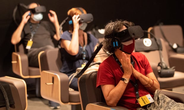 VR-Headset-Anwender bei einer Aufführung des VR-Projekts „Symphony“ in Spanien. Bildquelle: i.guim.co.uk