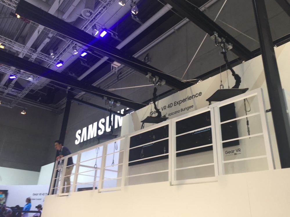 Als Highlight der Samsung Virtual-Reality Showcases ist definitiv der virtuelle-Bungee-Jump zu nennen, den Samsung auf der IFA 2016 wagemutigen Virtual-Reality Jüngern angedeihen lässt.